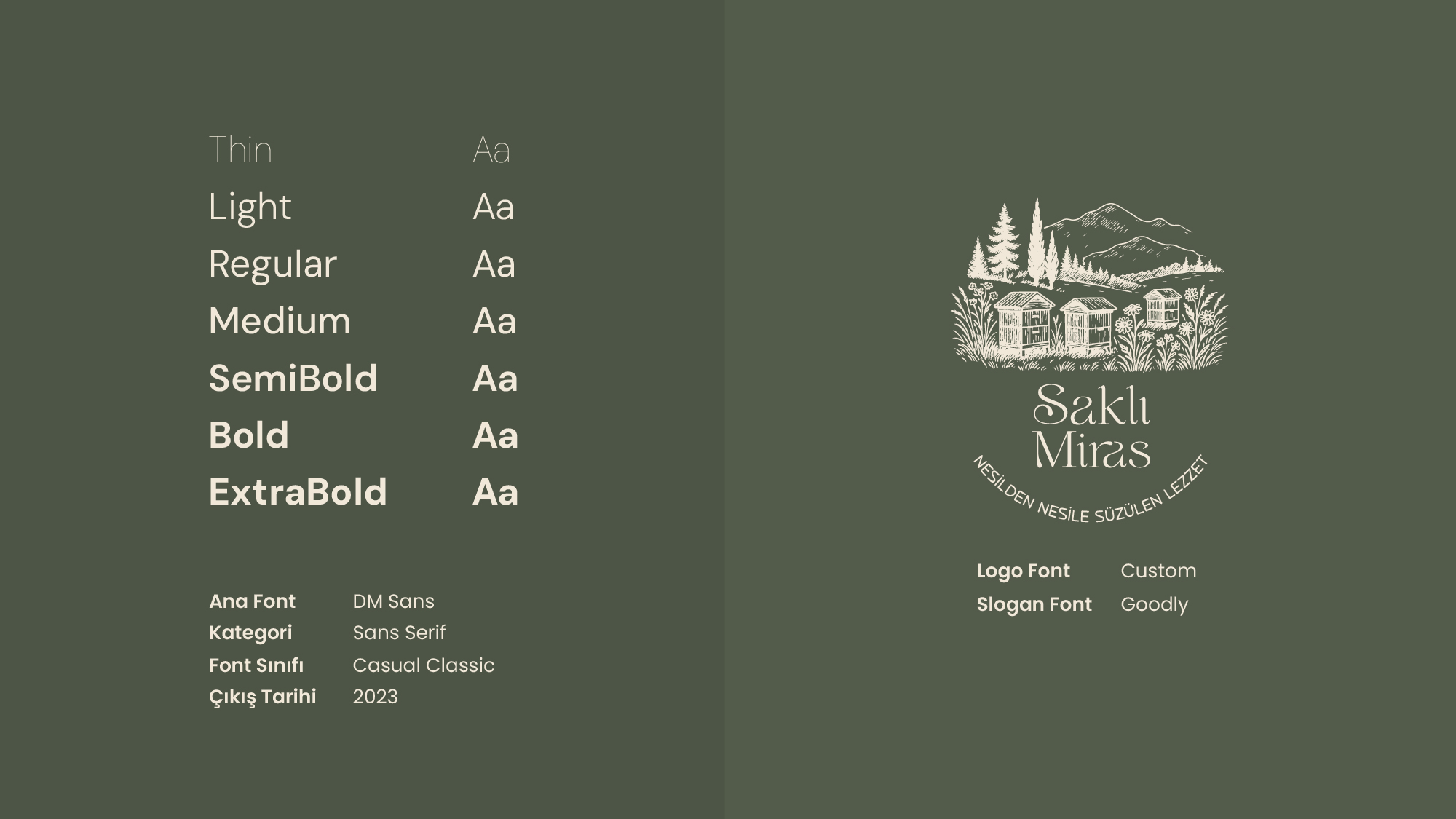 Saklı Miras, nesilden nesile aktarılan bir üretim geleneğini, sade ve güven veren bir marka kimliğiyle günümüze taşıyan bir bal markasıdır. Marka için hazırlanan kurumsal kimlik çalışmasında; doğallık, sadelik ve güven değerleri temel alındı.